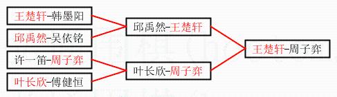 | 2.上半区半决赛王楚轩获胜, 比分:王楚轩 1:0 邱禹然。棋局: | ||
