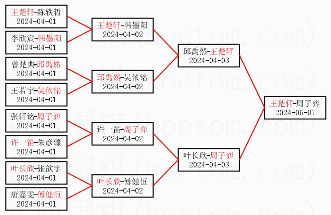 2.上半区半决赛王楚轩获胜, 比分:王楚轩 1:0 邱禹然。棋局: