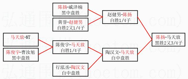 | 1.陈扬获得冠军,马天放获得亚军。决赛比分:陈扬2:1马天放。棋局: | ||