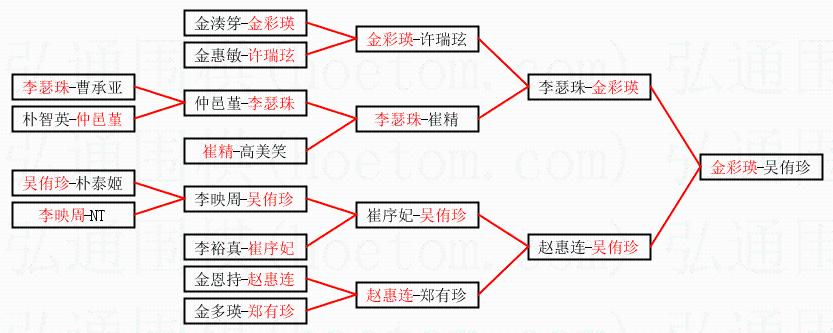 | 1.金彩瑛获得冠军,吴侑珍获得亚军。决赛比分:金彩瑛2:1吴侑珍。棋局: | ||
