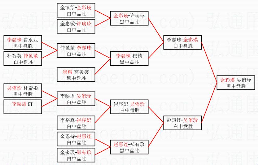 | 1.金彩瑛获得冠军,吴侑珍获得亚军。决赛比分:金彩瑛2:1吴侑珍。棋局: | ||