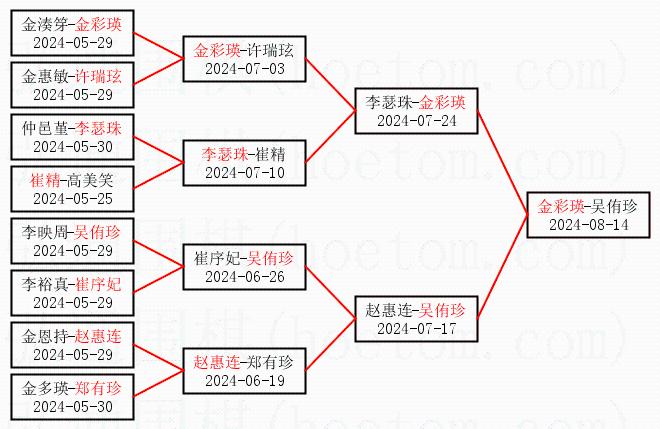 | 1.金彩瑛获得冠军,吴侑珍获得亚军。决赛比分:金彩瑛2:1吴侑珍。棋局: | ||