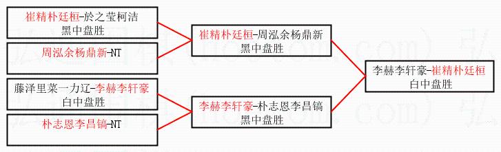 2.上半区半决赛崔精朴廷桓获胜, 比分:崔精朴廷桓 1:0 周泓余杨鼎新。棋局: