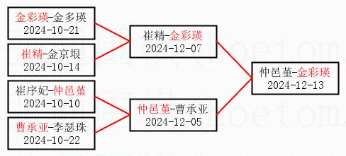 2.上半区半决赛金彩瑛获胜, 比分:金彩瑛 1:0 崔精。棋局: