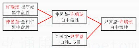 1.许瑞玹获得冠军,尹罗恩获得亚军。决赛比分:许瑞玹1:0尹罗恩。棋局: