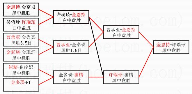 | 1.金恩持获得冠军,许瑞玹获得亚军。决赛比分:金恩持2:0许瑞玹。棋局: | ||