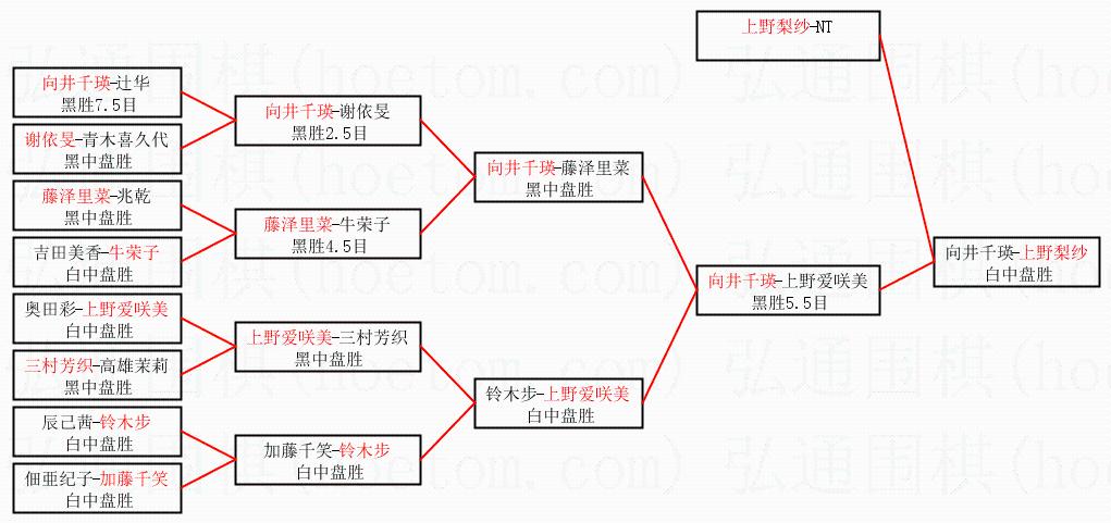 1.上野梨纱获得冠军,向井千瑛获得亚军。决赛比分:上野梨纱2:0向井千瑛。棋局:
