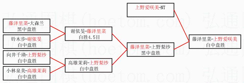 3.下半区半决赛藤泽里菜获胜,比分:藤泽里菜1:0上野梨纱。棋局: