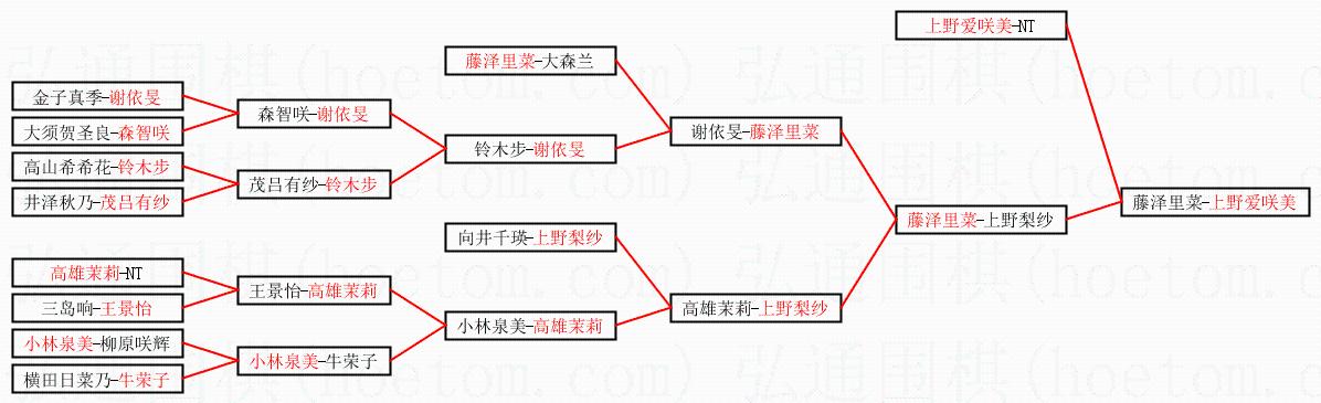 1.上野爱咲美获得冠军,藤泽里菜获得亚军。决赛比分:上野爱咲美2:1藤泽里菜。棋局: