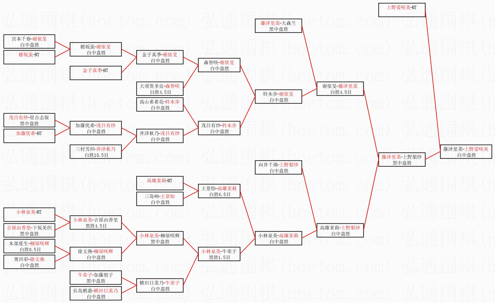 | 1.上野爱咲美获得冠军,藤泽里菜获得亚军。决赛比分:上野爱咲美2:1藤泽里菜。棋局: | ||