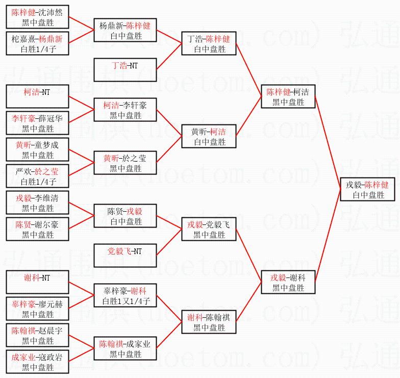 1.陈梓健获得冠军,戎毅获得亚军。决赛比分:陈梓健1:0戎毅。棋局:
