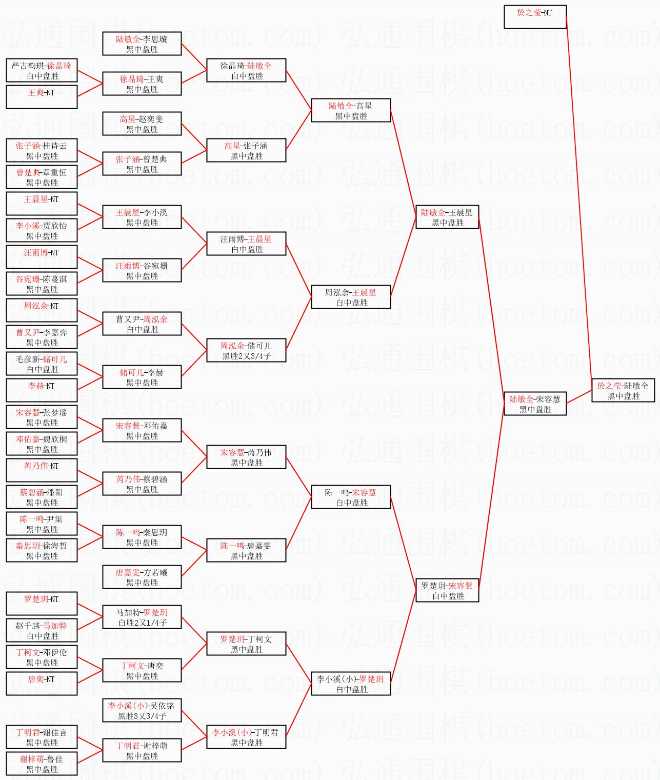1.於之莹获得冠军,陆敏全获得亚军。决赛比分:於之莹2:0陆敏全。棋局: