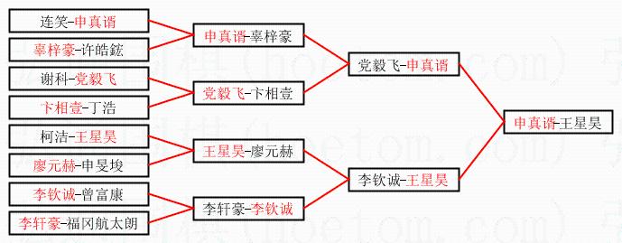 | 1.申真谞获得冠军,王星昊获得亚军。决赛比分:申真谞2:0王星昊。棋局: | ||
