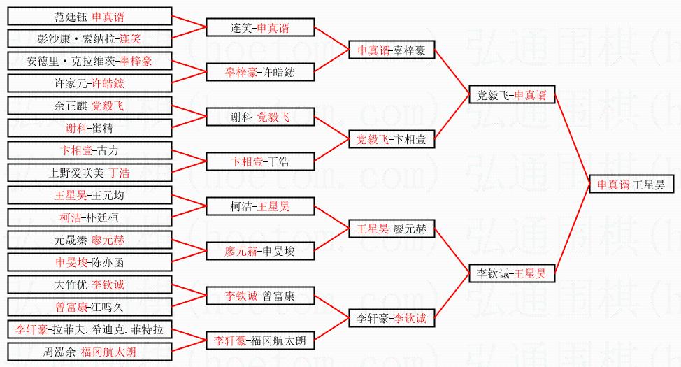 | 1.申真谞获得冠军,王星昊获得亚军。决赛比分:申真谞2:0王星昊。棋局: | ||