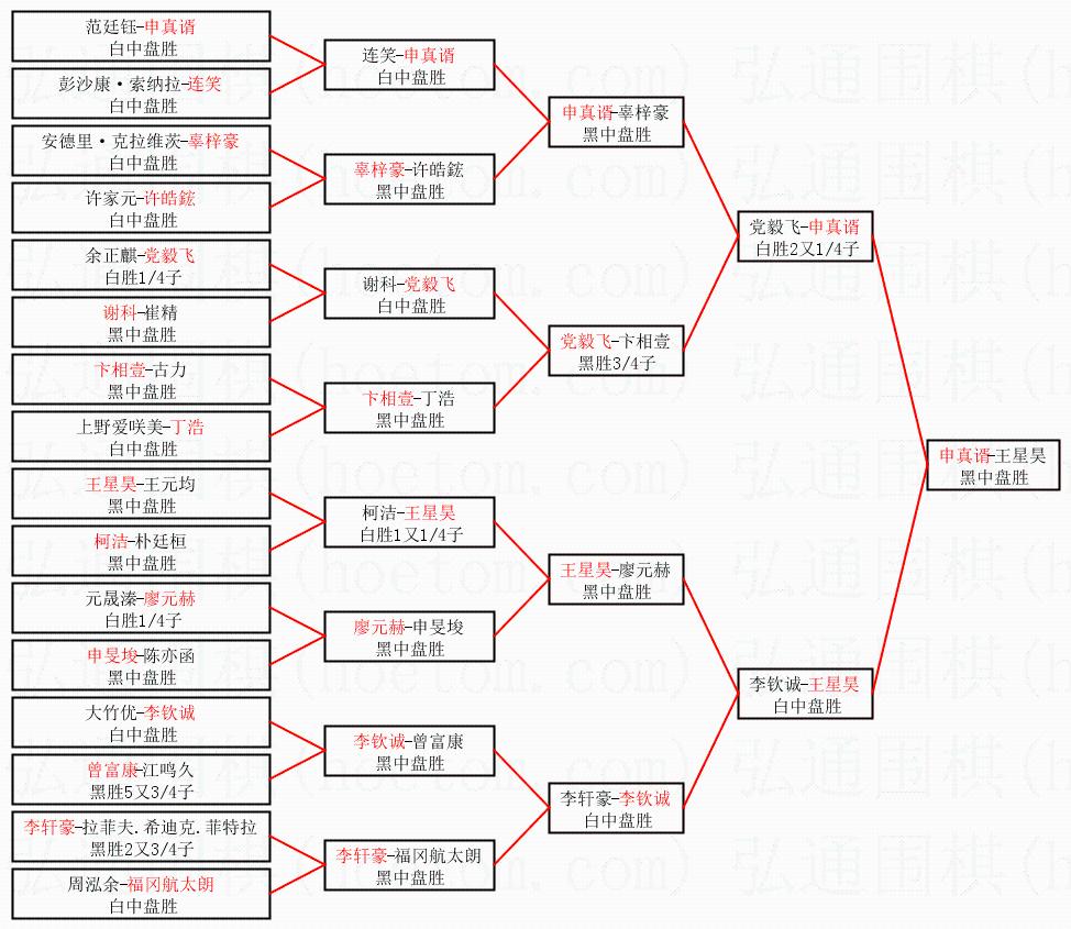 | 1.申真谞获得冠军,王星昊获得亚军。决赛比分:申真谞2:0王星昊。棋局: | ||