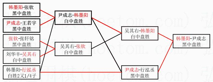 | 2.上半区半决赛韩墨阳获胜, 比分:韩墨阳 1:0 吴其右。棋局: | ||