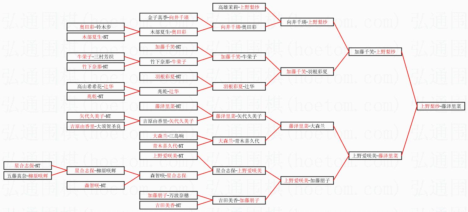 1.上野梨纱获得冠军,藤泽里菜获得亚军。决赛比分:上野梨纱1:0藤泽里菜。棋局: