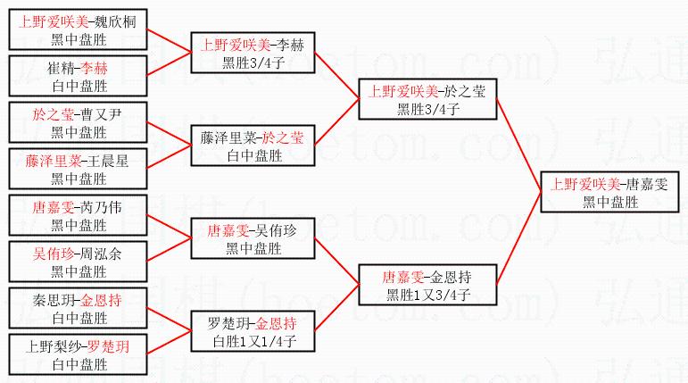 | 1.上野爱咲美获得冠军,唐嘉雯获得亚军。决赛比分:上野爱咲美2:1唐嘉雯。棋局: | ||