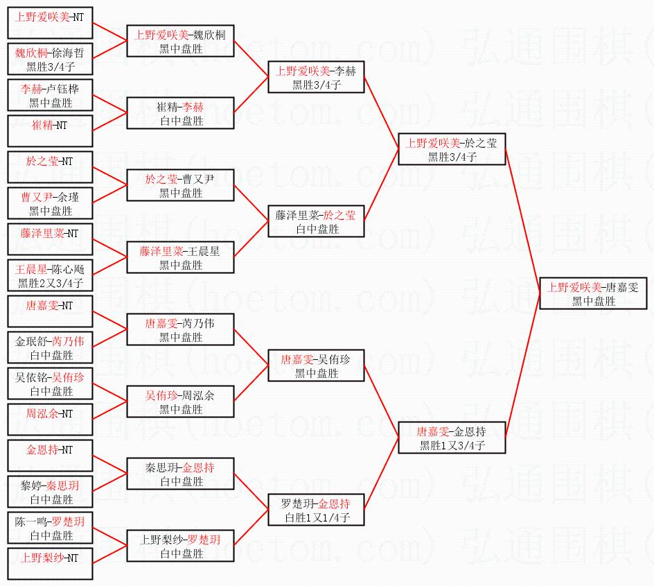 2.上半区半决赛上野爱咲美获胜, 比分:上野爱咲美 1:0 於之莹。棋局: