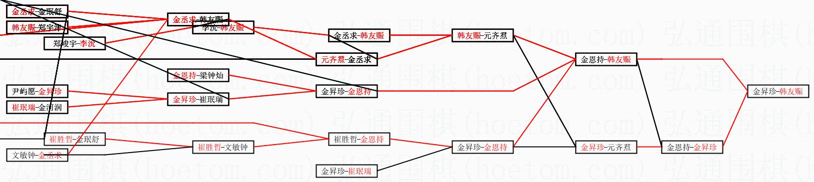 1.韩友赈获得冠军,金昇珍获得亚军。决赛比分:韩友赈1:0金昇珍。棋局: