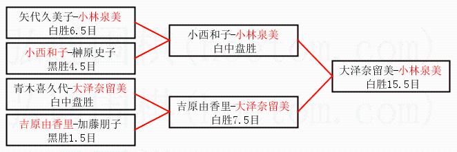 1.小林泉美获得冠军,大泽奈留美获得亚军。决赛比分:小林泉美1:0大泽奈留美。棋局: