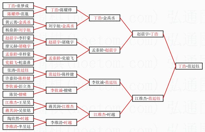 2.上半区半决赛丁浩获胜, 比分:丁浩 1:0 赵晨宇。棋局: