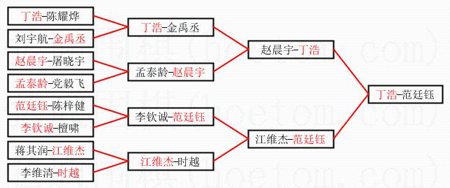 2.上半区半决赛丁浩获胜, 比分:丁浩 1:0 赵晨宇。棋局:
