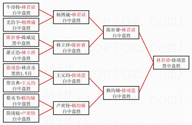2.上半区半决赛林君谚获胜, 比分:林君谚 1:0 陈祈睿。棋局: