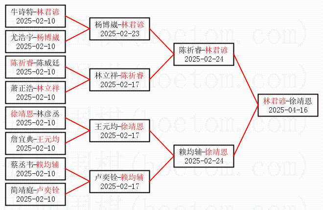 2.上半区半决赛林君谚获胜, 比分:林君谚 1:0 陈祈睿。棋局: