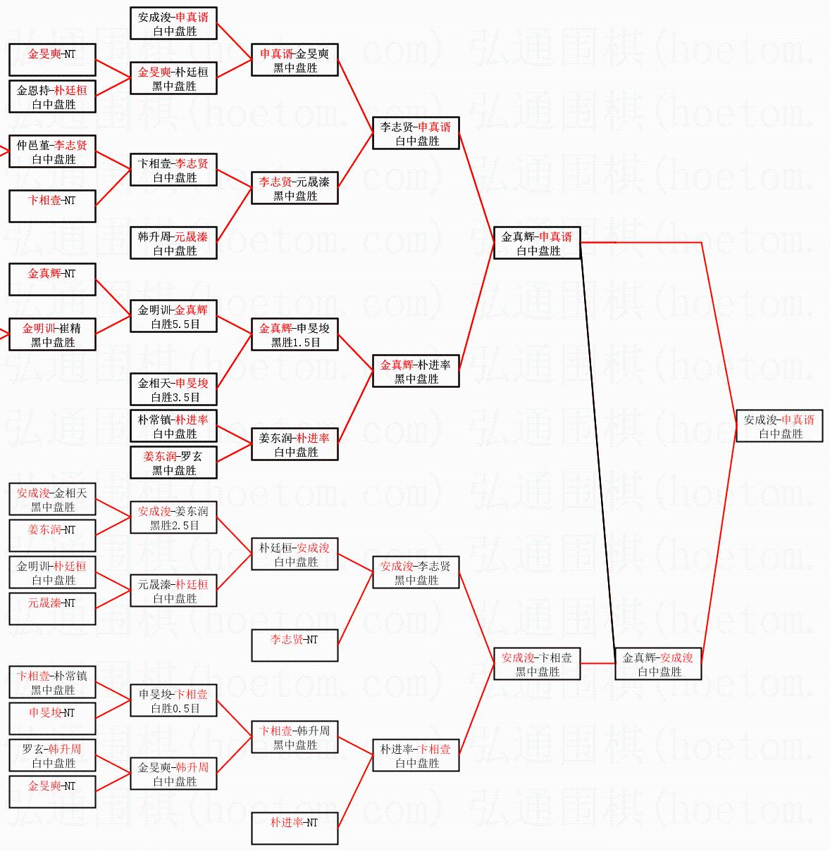 1.申真谞获得冠军,安成浚获得亚军。决赛比分:申真谞3:0安成浚。棋局: