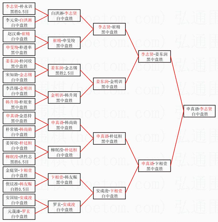 | 1.李志贤获得冠军,申真谞获得亚军。决赛比分:李志贤2:1申真谞。棋局: | ||