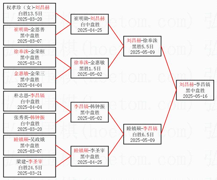 2.上半区半决赛刘昌赫获胜, 比分:刘昌赫 1:0 徐奉洙。棋局: