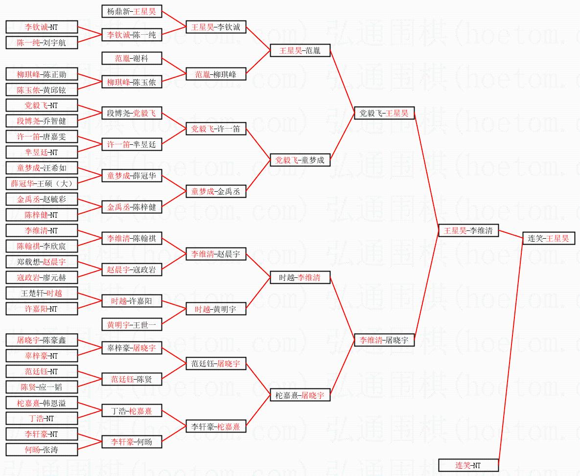 1.王星昊获得冠军,连笑获得亚军。决赛比分:王星昊2:0连笑。棋局: