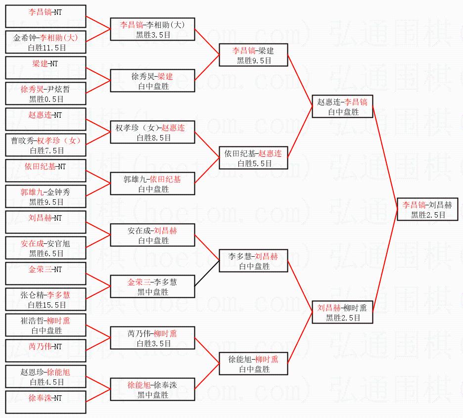 2.上半区半决赛李昌镐获胜, 比分:李昌镐 1:0 赵惠连。棋局: