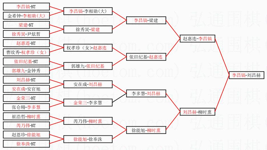 2.上半区半决赛李昌镐获胜, 比分:李昌镐 1:0 赵惠连。棋局: