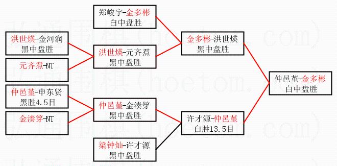 | 2.上半区半决赛金多彬获胜, 比分:金多彬 2:1 洪世煐。棋局: | ||