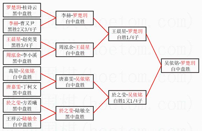 1.罗楚玥获得冠军,吴依铭获得亚军。决赛比分:罗楚玥1:0吴依铭。棋局:
