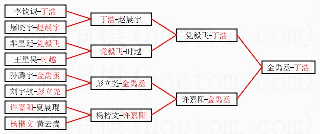 1.丁浩获得冠军,金禹丞获得亚军。决赛比分:丁浩1:0金禹丞。棋局: