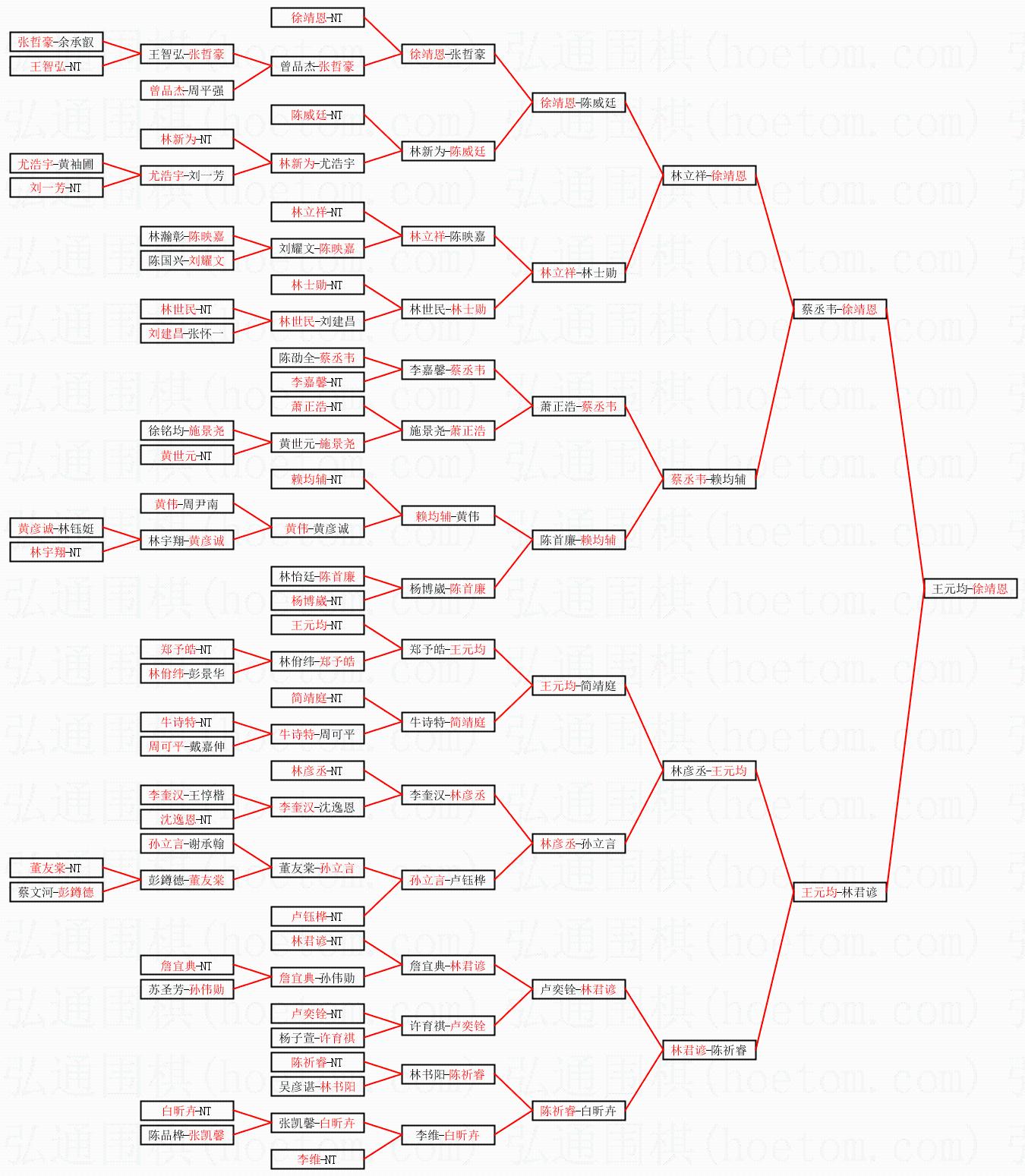 | 2.上半区半决赛徐靖恩获胜, 比分:徐靖恩 1:0 蔡丞韦。棋局: | ||