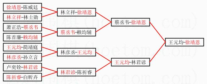 1.徐靖恩获得冠军,王元均获得亚军。决赛比分:徐靖恩2:0王元均。棋局: