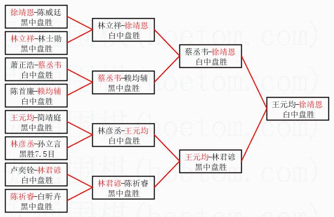 1.徐靖恩获得冠军,王元均获得亚军。决赛比分:徐靖恩2:0王元均。棋局: