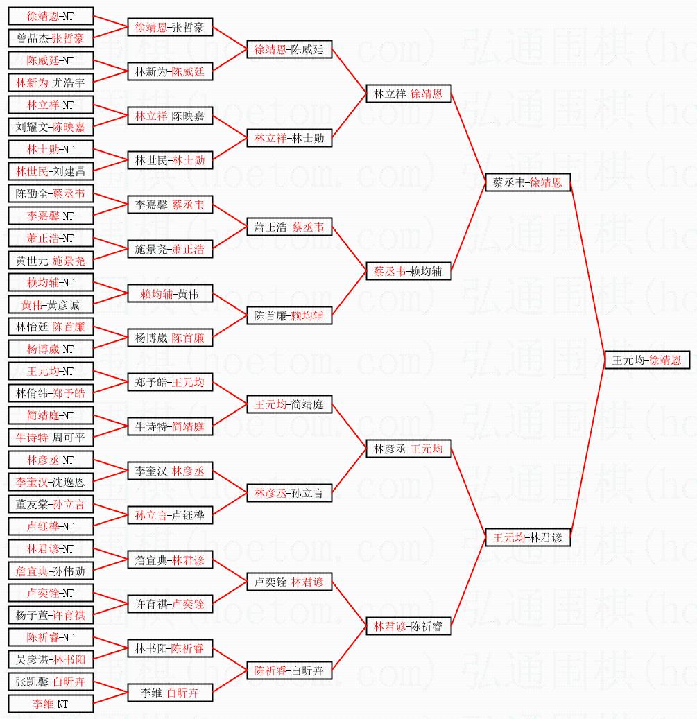 | 1.徐靖恩获得冠军,王元均获得亚军。决赛比分:徐靖恩2:0王元均。棋局: | ||
