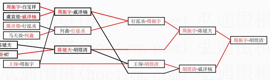 | 2.上半区半决赛周振宇获胜, 比分:周振宇 1:0 陈镱夫。棋局: | ||