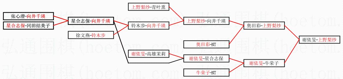 1.上野梨纱获得冠军,谢依旻获得亚军。决赛比分:上野梨纱1:0谢依旻。棋局: