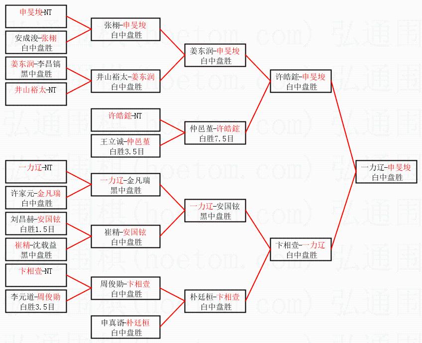 2.上半区半决赛申旻埈获胜, 比分:申旻埈 1:0 许皓鋐。棋局: