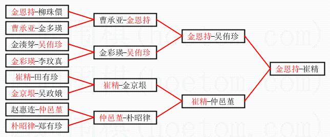 | 1.金恩持获得冠军,崔精获得亚军。决赛比分:金恩持2:1崔精。棋局: | ||