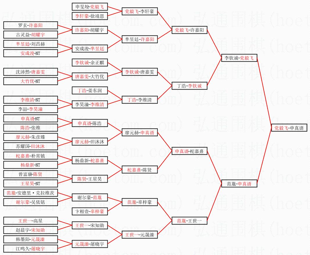 1.党毅飞获得冠军,申真谞获得亚军。决赛比分:党毅飞2:1申真谞。棋局: