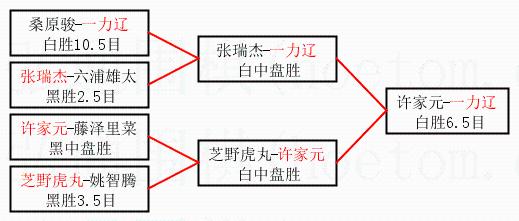 | 3.下半区半决赛许家元获胜,比分:许家元1:0芝野虎丸。棋局: | ||
