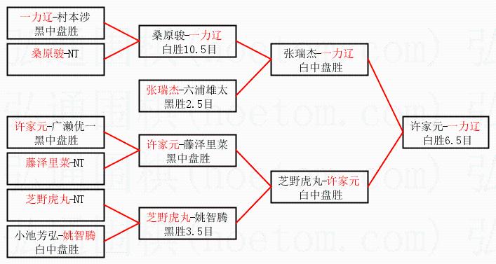 | 3.下半区半决赛许家元获胜,比分:许家元1:0芝野虎丸。棋局: | ||