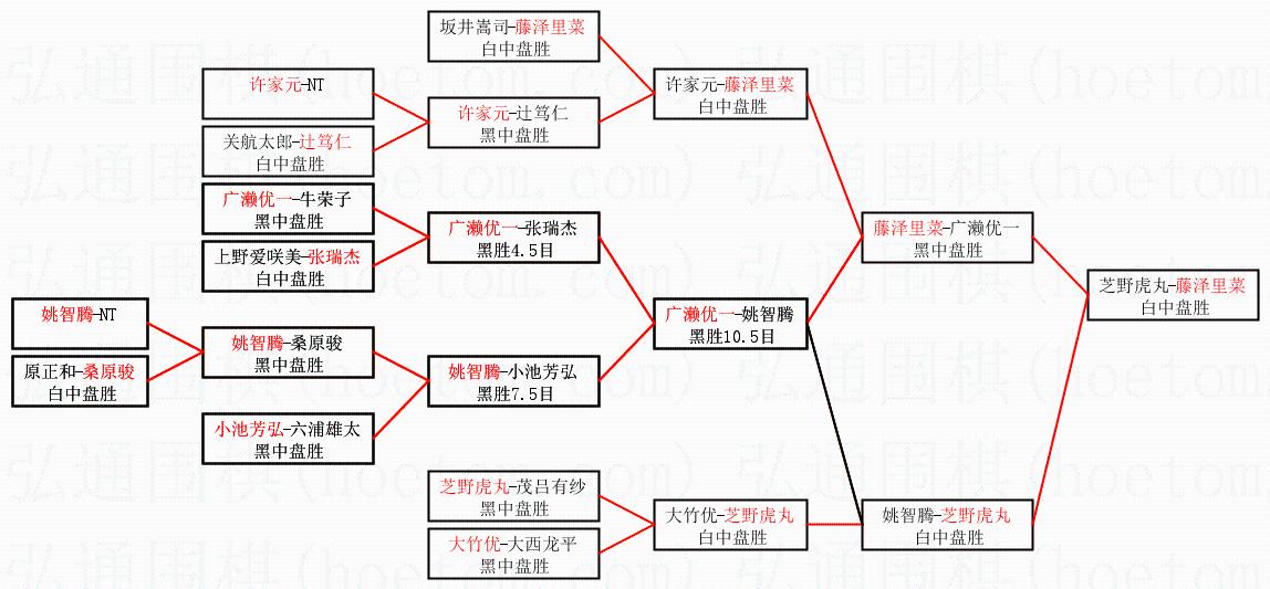 | 1.藤泽里菜获得冠军,芝野虎丸获得亚军。决赛比分:藤泽里菜1:0芝野虎丸。棋局: | ||